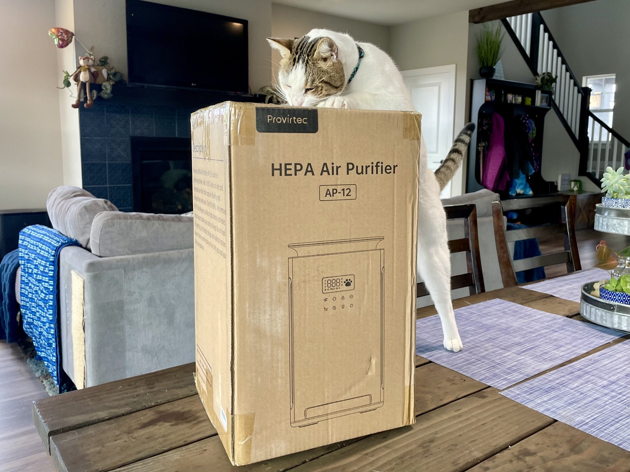 As soon as the Provirtec HEPA Air Purifier arrived, my cat, Makoa, was interested. It was as if he somehow knew this purifier was specifically designed with cats and other pets in mind.