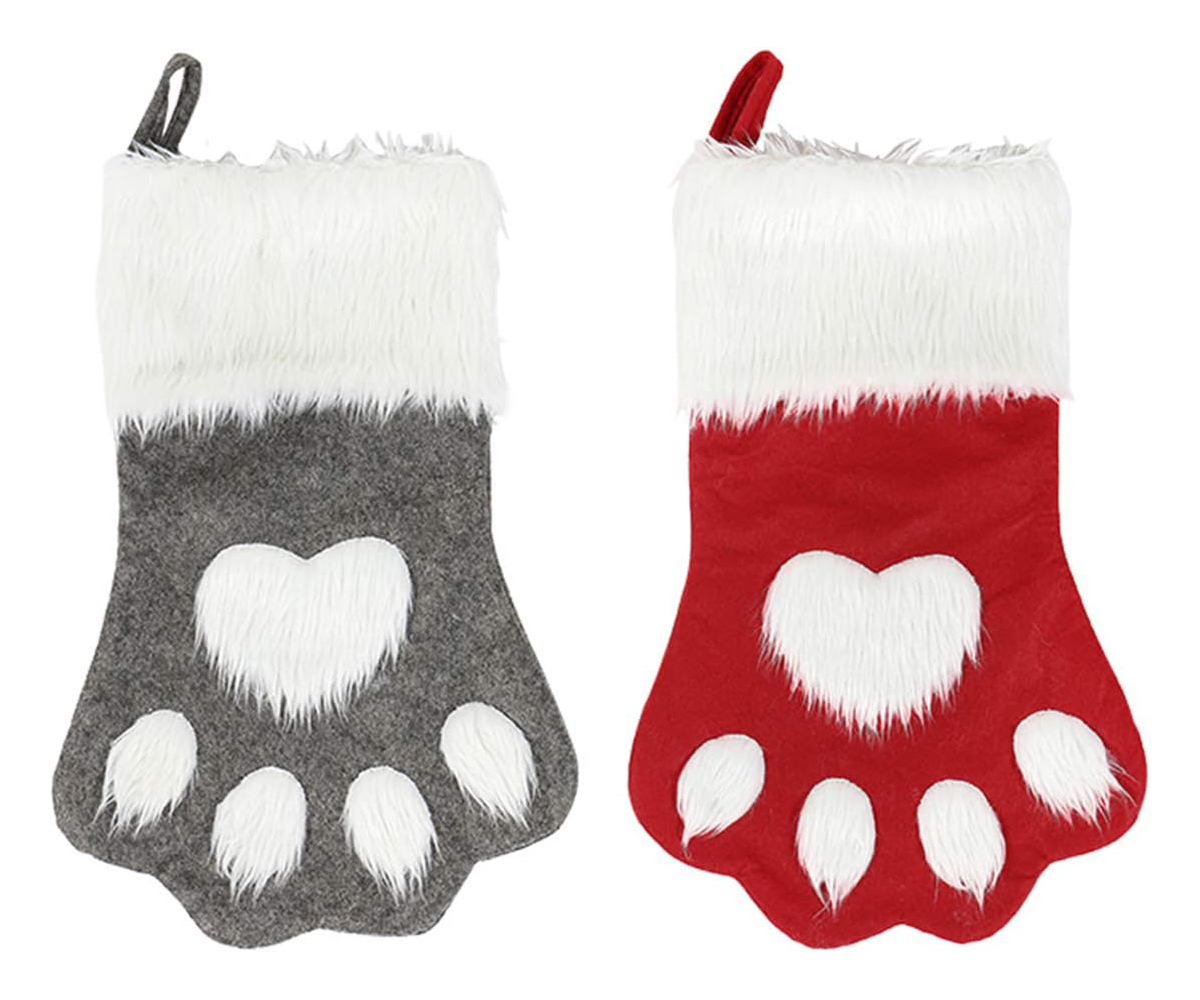 9. Pet Paw Plush Christmas Stockings 2-Pack