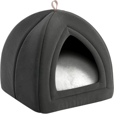 The Bedsure cat bed is a cozy cat cave that doubles as a cushion. The pod has a non-skid bottom and is made with high-quality, high-density foam that keeps its shape, with a removable, machine-washable soft cushion for added comfort. The bed is lightweight, has a nifty leather handle for carrying, and is foldable for easy transportation.
