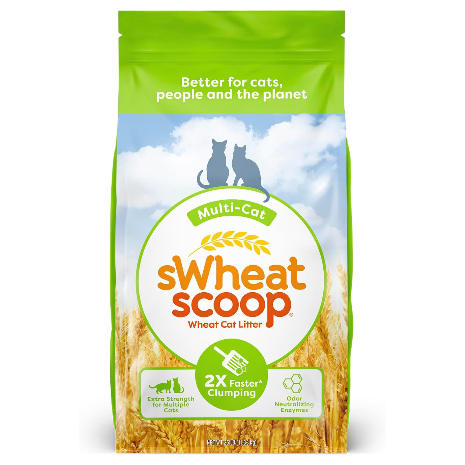 sWheat Scoop Multi-Cat Unscented Clumping Wheat Cat Litter is a natural, ultra-absorbent litter that uses renewable and biodegradable wheat to trap and neutralize odors. Unlike other clay litters, it has no dyes, perfumes, dust, or other potentially harmful ingredients.