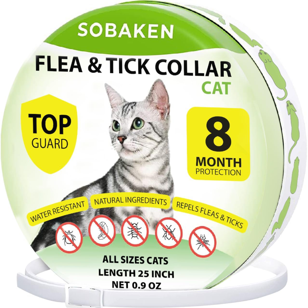 SOBAKEN Flea Collar for Cats is yet another collar that uses all-natural ingredients including spearmint and clove oils, which are extremely effective in killing fleas and ticks. This company offers a lifetime warranty on its collars and only uses safe and effective ingredients. Each collar is 13 inches long, allowing you to adjust and cut the excess for maximum comfort for your kitty. It repels and kills within 24 hours of applying.