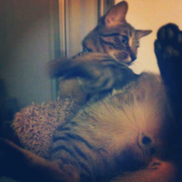 Janice and Gabe swear this photo of Hilo wasn’t staged. (Even if it was, we still love those plump ginger haunches.)
