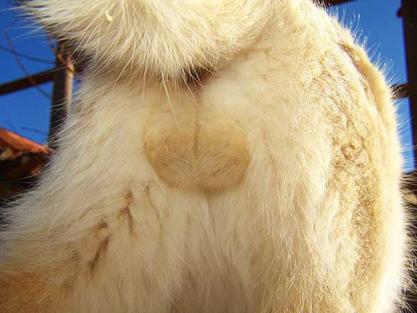 Denise D. sent a picture of her cat Jenny’s interesting patchwork behind: