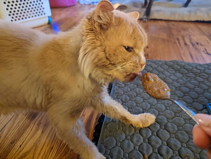 Since this is a dehydrated food, the texture is different from the wet or dry foods your cat might already be used to. There may be an adjustment period to the texture of this food, and it may take a little bit of time to find the perfect consistency to appease your cat.